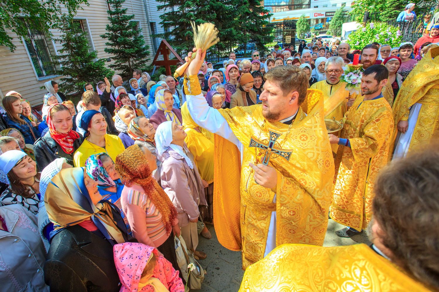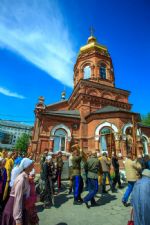 По окончании Литургии верующие совершили крестный ход вокруг храма с иконой Иверской Божией Матери, привезенной накануне на Алтай уральскими казаками.