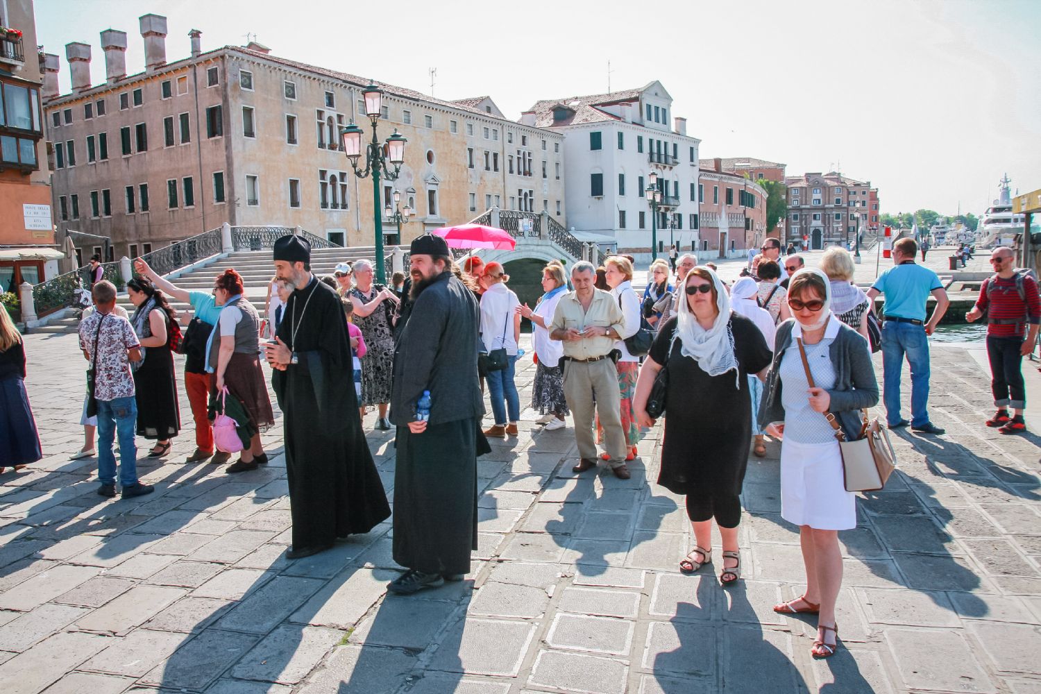 А потом мы прибыли в Венецию. Там тоже много святынь. Протоиерей Алексий Ястребов произнес хорошую проповедь перед началом молебна святому Иоанну Милостивому, что получаемое материальное благо - это кредиты, которые нам надо отрабатывать постом, молитвой, добрыми делами.