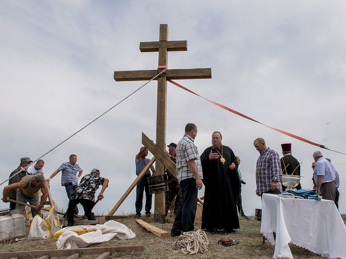 Крест был установлен по инициативе и на средства благотворителей - директора охранной фирмы «Витязь» из Барнаула А. В. Кашкарова и предпринимателя, фермера А.П. Евсюкова.