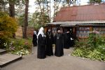 У храма святителя Макария Предстоятеля Русской Православной Церкви встречали епископ Горноалтайский и Чемальский Каллистрат, настоятель подворья иеромонах Серафим (Бубнов), вдова московского фотохудожника Виктора Павлова, воссоздавшего скит Иоанна Богослова на о. Патмос, Галина Павлова, прихожане и паломники.