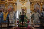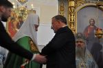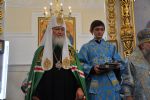По завершении Литургии Святейшего Патриарха Кирилла приветствовал митрополит Барнаульский и Алтайский Сергий. В дар Его Святейшеству правящий архиерей преподнес список с главной святыни Алтая – чудотворной Коробейниковской-Казанской иконы Божией Матери.