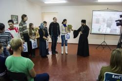 Заключительной станцией была барнаульская семинария, где ребята смогли попить горячий кофе с бутербродами, посмотреть фотографии всех участников, которые они делали по ходу игры, и, конечно, были определены победители. Командам были вручены памятные дипломы об участии в игре. А победителям были вручены ценные подарки – подарочные сертификаты на посещение боулинг центра. Первое место заслужено заняла команда «Словяне» из православного молодежного объединения «Слово». Второе место заняла команда «Светлые головы» из АлтГТУ, и третье место было присуждено команде «Княжичи» из АГПУ. Каждая команда показала удивительное стремление к победе, находчивость в прохождении станций и редкую сплоченность. В конце мероприятия ребята высказали свои впечатления, пожелали друг другу дальнейших интересных и творческих встреч и сфотографировались на память.