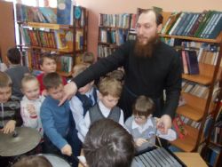 Юные зрители собрались в городской библиотеке №18. Сначала сотрудники библиотеки рассказали им об истории и традициях празднования Нового года и Рождества Христова. А на вопрос о том, откуда в России появилась традиция ставить в домах елки, ответили сами ребятишки. Потом им показали кукольное представление (рождественский вертеп) о празднике Рождества Христова под аккомпанемент протодиакона Владимира Черных, а воспитанницы подготовительного отделения Регентской школы спели несколько колядок.