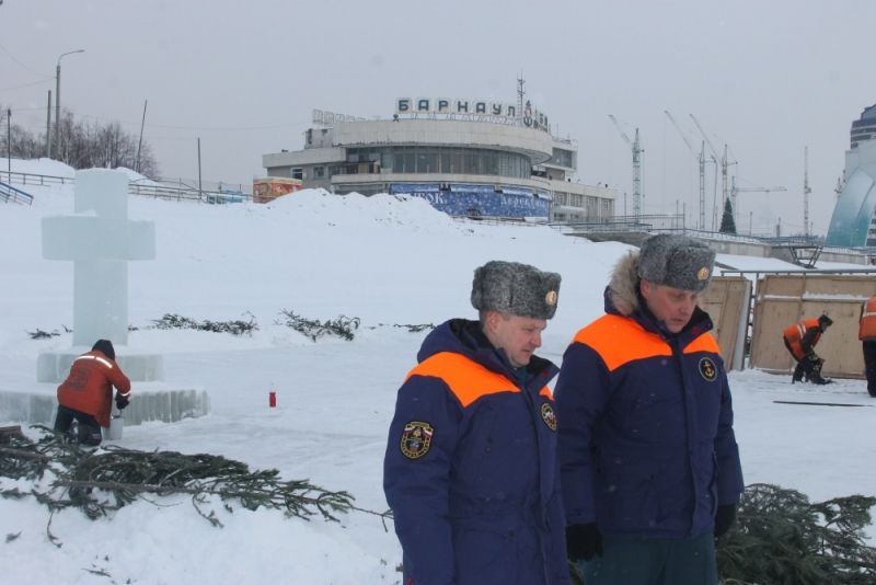 В канун праздника Крещения начальник Главного управления МЧС России по Алтайскому краю Игорь Лисин лично проинспектировал ход работ по подготовке купели в районе Речного вокзала краевой столицы. Специалисты ГИМС провели очередной контрольный замер толщины льда. По их оценке место для проведения обряда погружения готово к завтрашнему празднику и теперь общая задача инспекторов, спасателей, сотрудников полиции - не допустить нештатных ситуаций во время крещенских мероприятий.