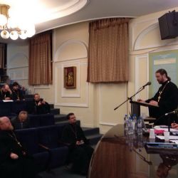 На секции «Возрождение семейных ценностей: актуальные направления практической работы» в рамках направления «Христианская семья – домашняя церковь» он выступил с докладом о деятельности епархиальной комиссии по вопросам семьи, защите материнства и детства Барнаульской епархии.