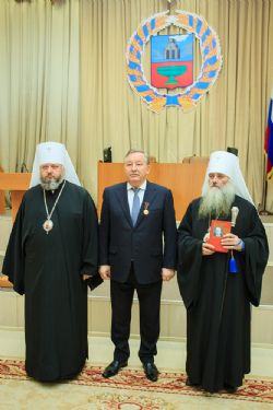 Стоит отметить, что книга издана тиражом 2 тысячи экземпляров, она поступит в библиотеки Алтайского края, часть тиража - в свободную продажу. В завершение торжественной церемонии митрополит Сергий по поручению Святейшего Патриарха Кирилла вручил Губернатору края Александру Карлину юбилейную медаль «В память 1000-летия преставления святого равноапостольного великого князя Владимира».