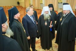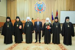 Первый экземпляр нового издания Губернатор Алтайского края вручил митрополиту Барнаульскому и Алтайскому Сергию для передачи Святейшему Патриарху Кириллу.