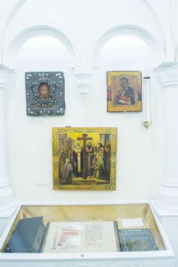 Встреча закончилась двумя музыкальными произведениями в исполнении молодых артистов. После окончания беседы учащихся провели в нижний экспозиционный зал «Православие на Алтае», где было рассказано об иконах, сосудах, облачениях, которые использовались в театральных представлениях. Взору было представлено факсимильное издание «Остромирова Евангелия». Два раздела музея посвящены истории Алтайской духовной миссии и трудам алтайских миссионеров. Был показан ключ от Знаменской церкви Барнаула, сохраненный прихожанами и переданный в музей.