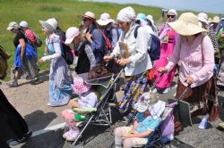 Был там и мальчик Саша четырех с половиной лет, который весело носился вдоль колонны, и Илюша с Ярославом, у которых недавно появился на свет третий брат, которому еще нет и месяца, но он тоже ехал в коляске с мамой Анастасией. Здесь были и мои знакомцы с прошлого года «Арсений-мальчик» и «Лиза-девочка», теперь им 4 и 6 лет. Они шли с мамой и бабушкой. В Алейске наши палатки стояли рядом, и когда мы прибыли и расположились лагерем, кто-то из них заблажил громким ревом: «Хочу в крестный ход! Хочу в крестный ход!» По-видимому, их довезли на машине, а крестный ход для них – это движение в колонне в летних колясках, где они чувствуют себя как дома.