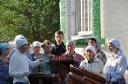 В Белояровке владыка отметил, что «мы подошли к середине пути. Но… конец – делу венец. Важно завершить начатое, доведя его до конца. Так и с крестным ходом. Мы – на середине пути. Иногда мы начинаем хорошо, но в середине пути ослабеваем, теряются наши цели, появляются другие – суетные, мелкие, сиюминутные. И мы сворачиваем с избранного пути. Да не будет с нами так!» Епископ Роман напомнил, что здесь, в Белояровке стоит храм в честь Сергия Радонежского и обратился к преподобному с молитвой помочь дойти и достойно завершить начатое, невзирая на все то, что нам мешает! И эта молитва возымела действие – мы дошли.