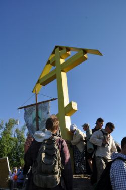 В Усть-Пристани нас ждал иеромонах Никандр (Речкунов) у Поклонного креста, здесь был отслужен водосвятный молебен, а на территории, примыкающей к строящемуся храму в честь святого праведного Иоанна Кронштадтского, был организован не только ужин, но душ и традиционный концерт. На Оби крестоходцев ждала встреча с казачьим стругом «Атаман Ермак» и его командой. Желающие могли также сходить и на святой источник. Помню, на концерте дети под гитару исполняли патриотические военные песни, в том числе «Синий платочек». Слова этих песен очень актуальны и сегодня, когда Запад в очередной раз покушается на богатства России, которые даровал русскому народу Господь за его веру…