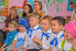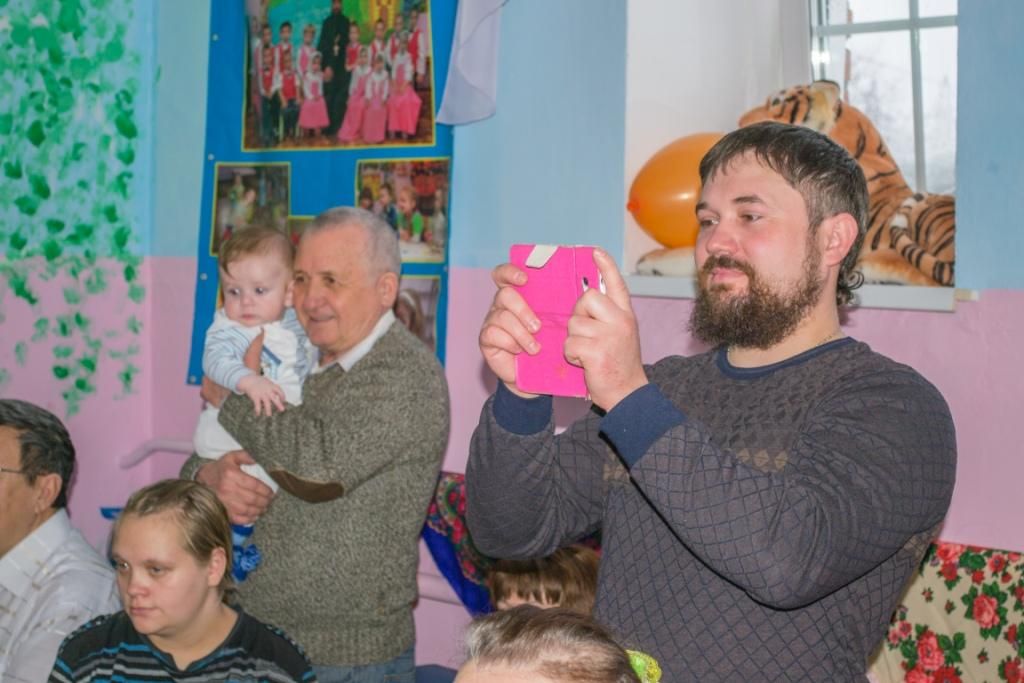 Дети вместе с родителями участвовали в различных играх, состязаниях, пели песни, читали стихи. А 23 февраля юных защитников Отечества поздравляли воспитанницы детсада. Ребята в благодарность исполнили танец "Яблочко".