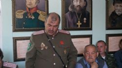 Атаман С.Ю. Рычков сначала сам рассказал о том, что было сделано за полгода силами алтайских казаков (отсчет времени идет с 21 декабря, когда отмечается день памяти святителя Николая Чудотворца - «Николы зимнего» до 21 мая — дня памяти «Николы зимнего», покровителя казачества).
