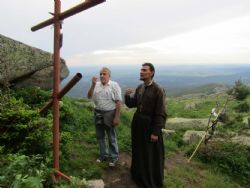 Далее группа вместе с журналистами отправилась к подножию горы Синюха. Тележурналистов интересовала история горы, и почему паломники приезжают и поднимаются на неё. Священник ответил на все интересующие вопросы журналистов, после чего совершилось восхождение на гору. Молились у святого источника. После восхождения читали акафист Божией Матери.