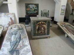 Вместе с журналистами группа посетила камнерезный завод в с.Колывань Курьинского района, где была организована экскурсия по рабочим цехам и складу готовой продукции. Здесь представлены мозаичные панно, иконы, престол и архиерейское седалище, приготовленные для села Курья в храм Божией Матери в честь иконы Божией Матери «Знамение». В этом храме крестился легендарный изобретатель-оружейник Михаил Тимофеевич Калашников. В настоящий момент храм восстанавливается.