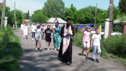 Это один из новых храмов Барнаульской епархии. Он расположен в поселке Борзовая Заимка. Первый крестный ход на Барнаулку прихожане совершили 19 января — в праздник Крещения Господня. И вот, спустя почти пять месяцев, снова прошли крестным ходом до реки. Здесь приняли крещение две девочки — Дарья и Есения. Их небесной покровительницей стала римская царица Артемия, пострадавшая во времена гонений на христиан за веру.