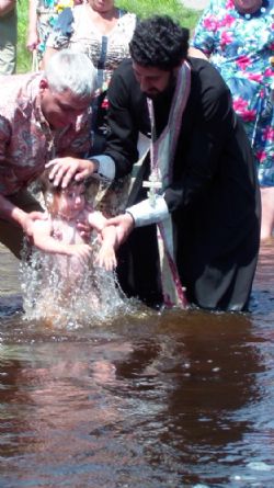 Настоятель храма во имя Преображения Господня иерей Кирилл Вещемов совершил 20 июня Таинство Крещения над двумя младенцами в открытом водоеме — реке Барнаулке.