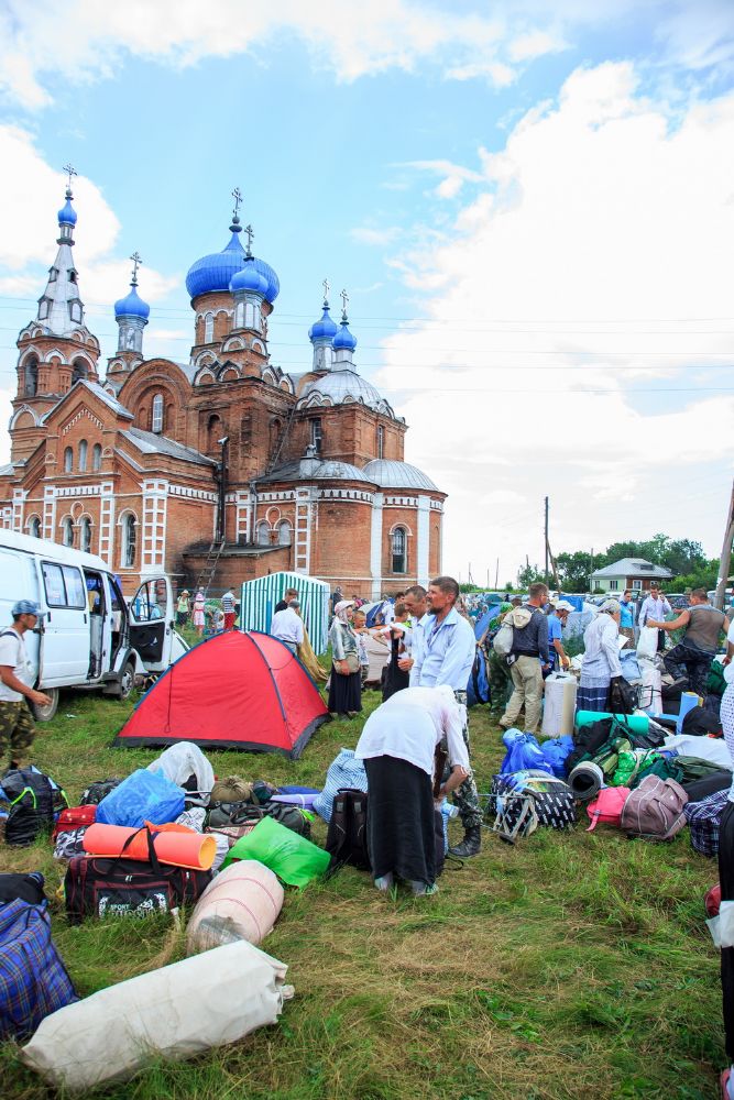 Паломников встречали многочисленные жители села, гости, приехавшие из разных уголков Алтайского края и регионов России и местное духовенство.