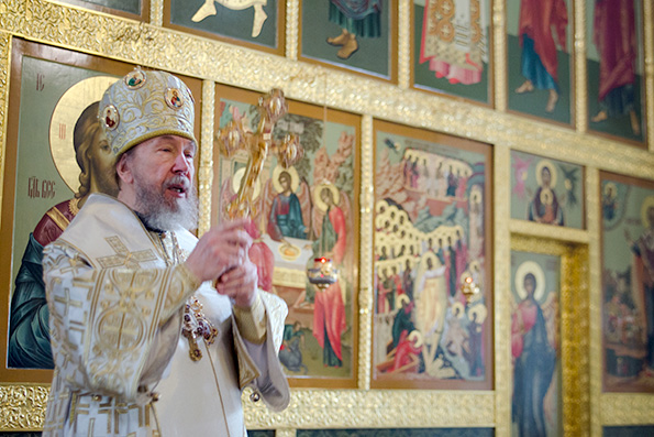 После молебного пения Владыка совершил чин благословения семей и обратился со словом поучения, призывая и молодые, и почтенные возрастом пары взирать на удивительный пример совместной жизни святых Петра и Февронии, пытаясь со всеми силами соответствовать их благочестивой жизни.