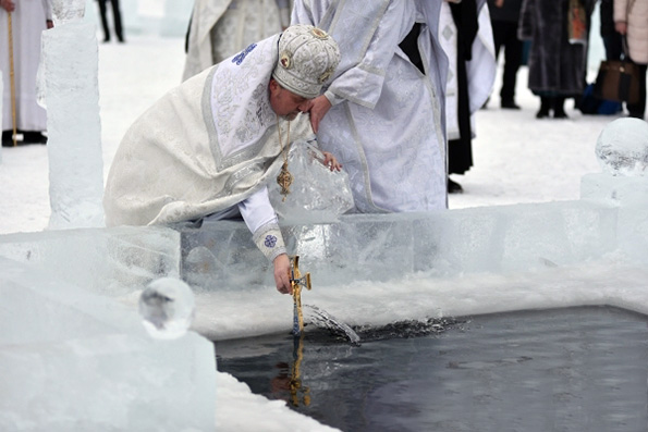Праздник Крещения Господня в Раифском монастыре традиционно открылся ночным богослужением в полночь – с 18 на 19 января. Утром, по окончании праздничной Божественной литургии в Троицком соборе, крестный ход двинулся на берег Раифского озера, где силами братии обители и художниками-резчиками создан ледяной городок и рукотворный Иордань. После молебна и чина Великого водоосвящения, который совершил наместник Раифского Богородицкого мужского монастыря архимандрит Всеволод, все желающие могли набрать крещенской воды, а в ледяной купели, вырубленной во льду в форме креста, – совершить погружение.