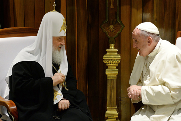 Патриарх Московский и всея Руси Кирилл надел на встречу с Папой Римским Франциском особую панагию (панагия — икона, носимая на груди как знак архиерейского достоинства), сообщил журналистам пресс-секретарь Патриарха священник Александр Волков.