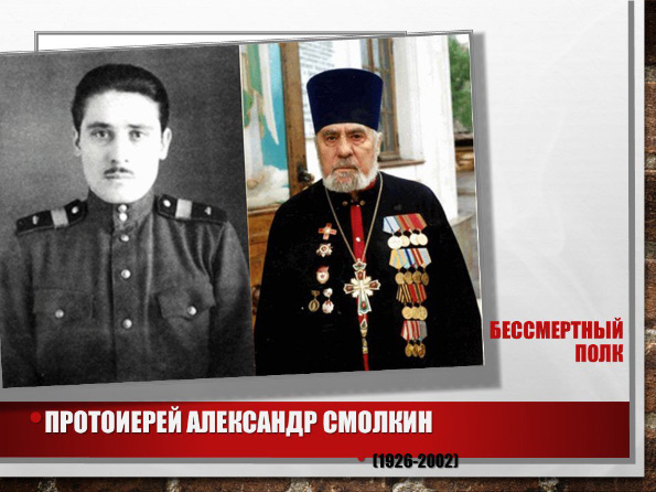 80, 84, 86, 91, 96… Это количество прожитых некоторыми из наших ветеранов лет. «Наших» — это тех, портреты которых несет в руках наш небольшой православный взвод в составе многотысячного «Бессмертного полка» по весенним улицам города. «Наши» герои — в рясах. На фотографиях одеяния священников и монахов украшают православные кресты и боевые награды. У многих наших соседей по шествию такое непривычное для мирского взора сочетание вызывает неподдельный интерес. Люди подходят, спрашивают.