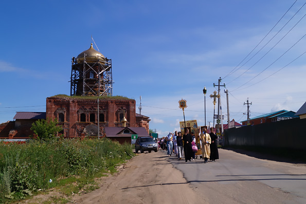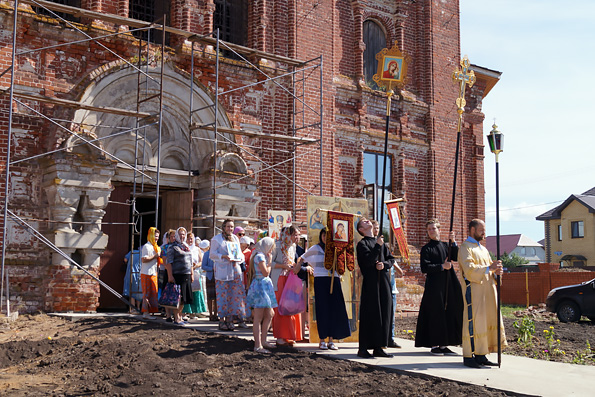 Божественную литургию в старинном, ныне восстанавливающимся храме XIX века, отслужил настоятель Никольского прихода иерей Виталий Беляев. Из храма крестный ход пошел по селу к месту обретения чудотворной иконы — к берегу озера, где в 1897 году двум братьям-помещикам был явлен медный образ почитаемого святого в воде озера. Со времени своего явления этот образ не однажды являл чудотворную силу и особо чтится верующими Казанской епархии. На святом месте в 2007 году возвели храм-часовню, в которой совершаются регулярные богослужения.