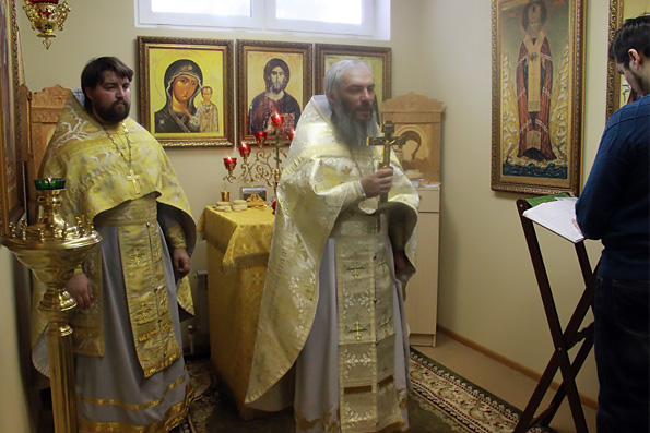 Литургию совершили настоятель Новоиерусалимского подворья, руководитель епархиального Отдела по работе с медицинскими учреждениями, иеромонах Роман (Модин), и настоятель храма Рождества Пресвятой Богородицы поселка Высокая Гора иерей Вячеслав Еременко.