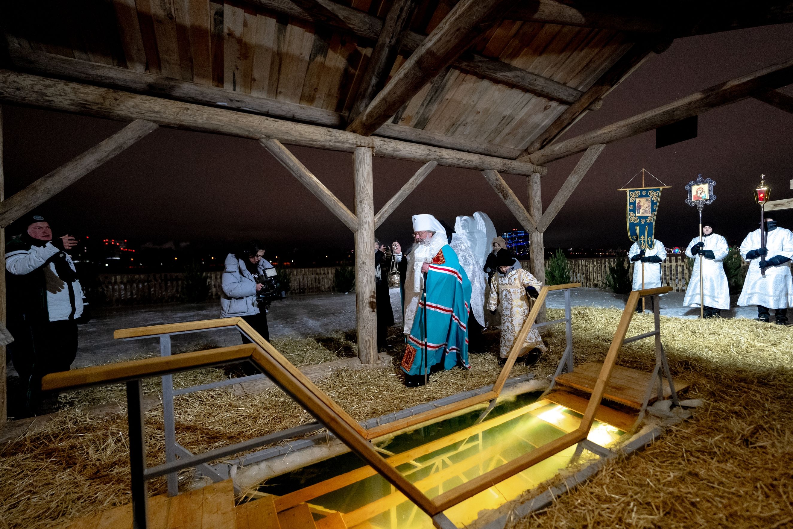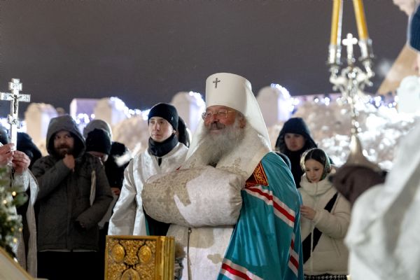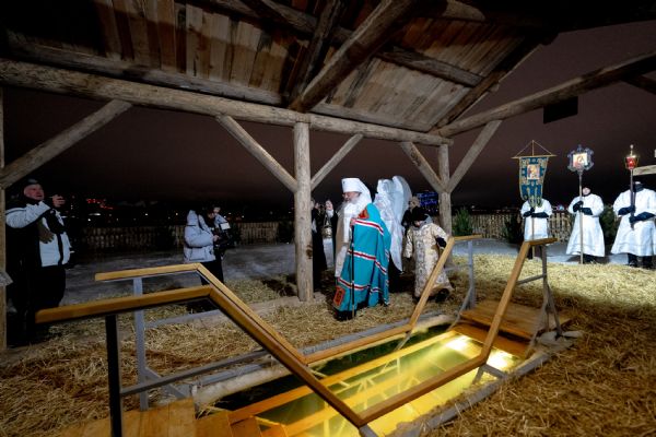 В канун праздника Крещения Господня митрополит Кирилл совершил чин великого освящения воды на реке Казанке