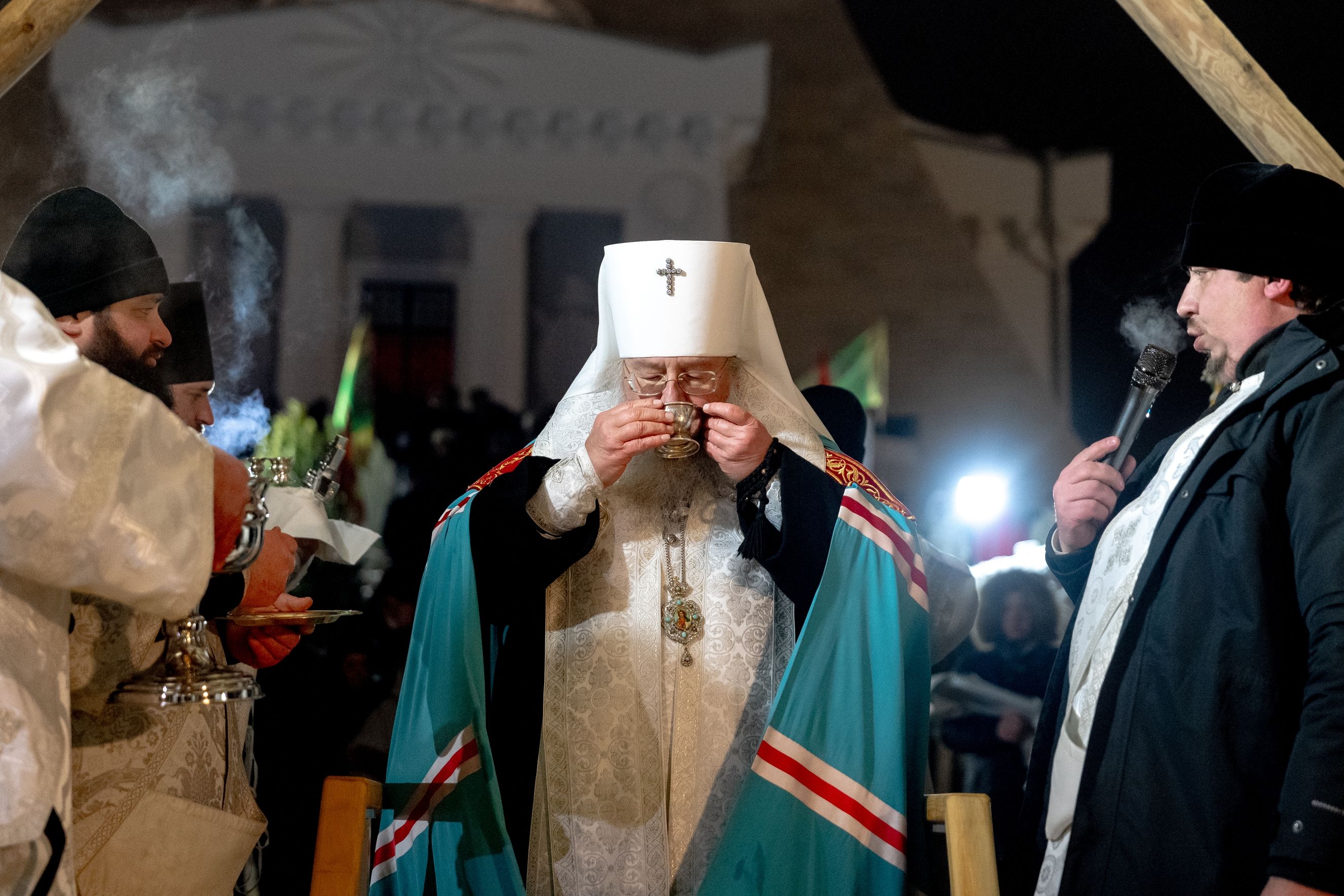 Дорогие друзья! Братья и сестры! Поздравляю всех вас с праздником! Молодёжь уже привыкла к тому что, власть поддерживает добрые инициативы, а нас – людей старшего поколения – это до сих пор удивляет и особенно радует. Заместитель председателя правительства Республики рубил здесь лёд, делал купель, чтобы люди приходили и совершали погружение в освящённую воду.