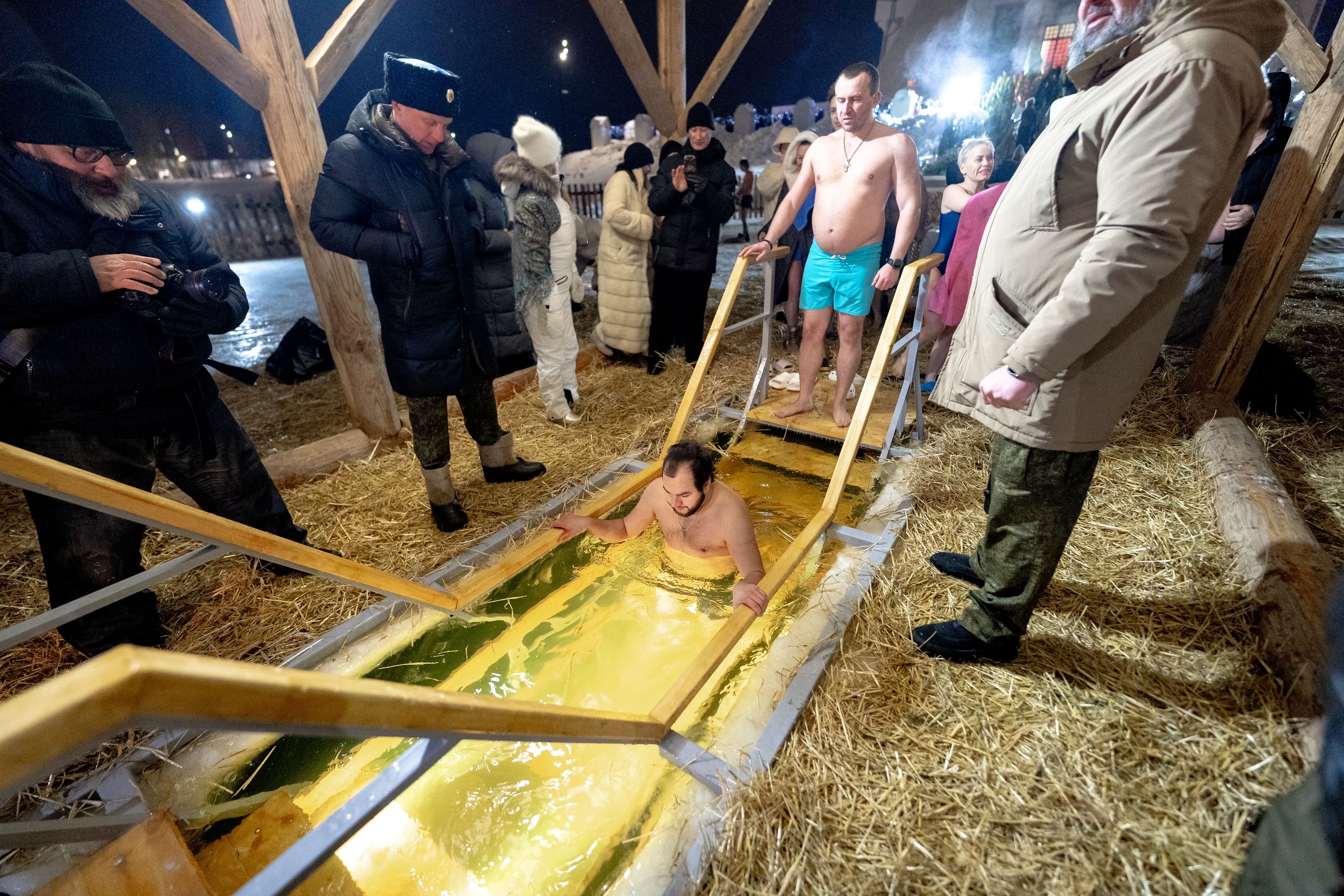 После богослужения верующие совершили погружение в освящённые воды. В Крещенскую ночь на Казанке также будут совершаться купания. 19 января, в праздник Крещения Господня, купель будет работать до 22:00. Около иордани дежурят сотрудники полиции и МЧС, бригады скорой медицинской помощи. Участников купаний, прихожан и гостей храма-памятника угощают горячим чаем.