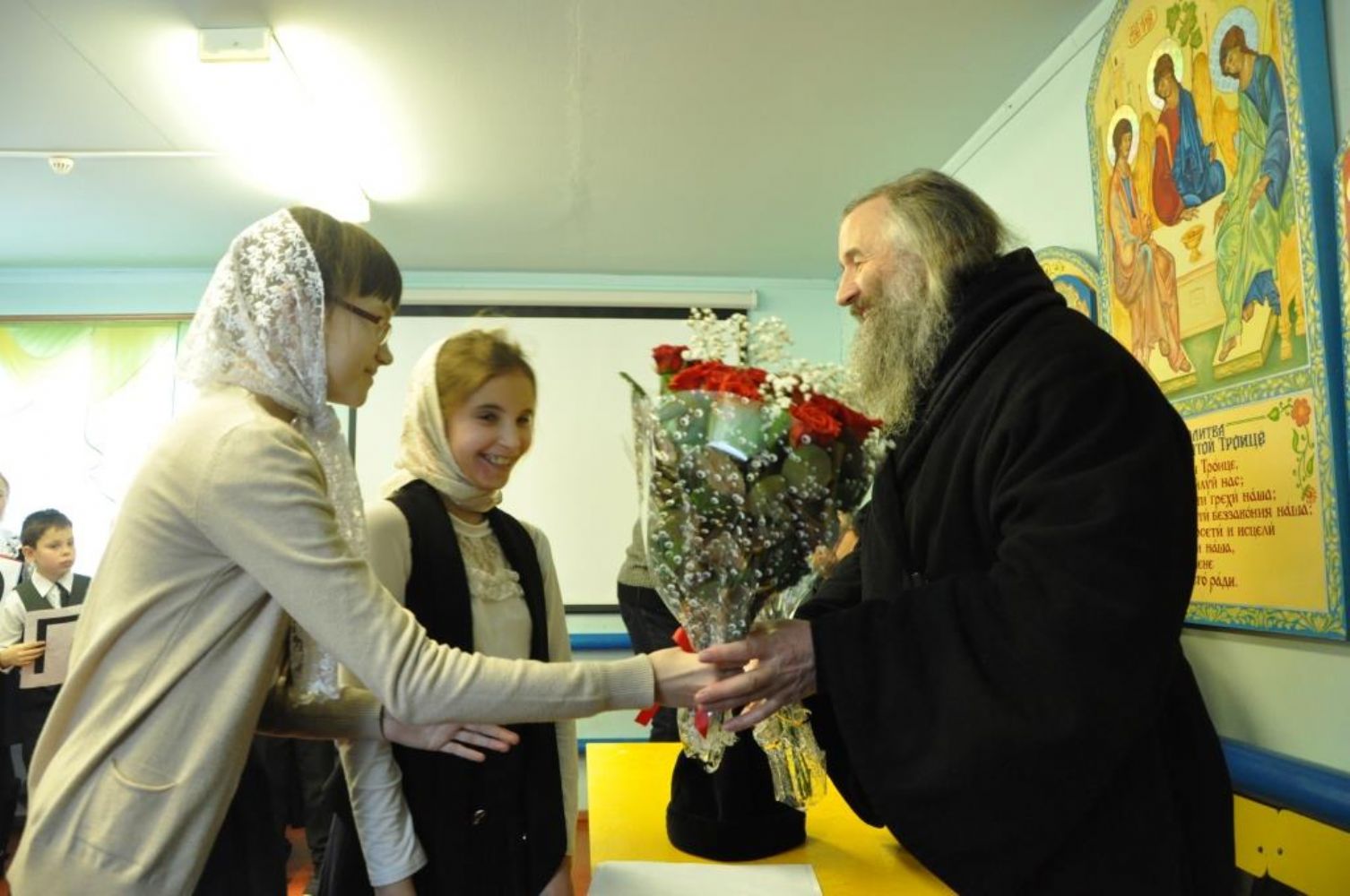 После Божественной литургии была совершена лития на могилке почившего протоиерея Владимира Васильева, бывшего настоятеля храма. После литии в воскресной школе дети показали концерт, посвященный любви к Родине.