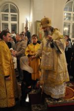 Вечером того же дня Владыка совершил Всенощное бдение в Воскресенском соборе г. Йошкар-Олы в сослужении секретаря епархии иеромонаха Серафима (Пасанаева), настоятеля храма протоиерея Сергия Поглазова и клириков храма.