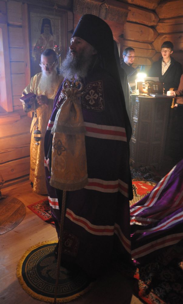 Вечером того же дня, накануне празднования Матфея Яранского, Владыка в сослужении клириков храма совершил Вечерню с чтением акафиста преподобному Матфею в Воскресенском соборе г. Йошкар-Олы.