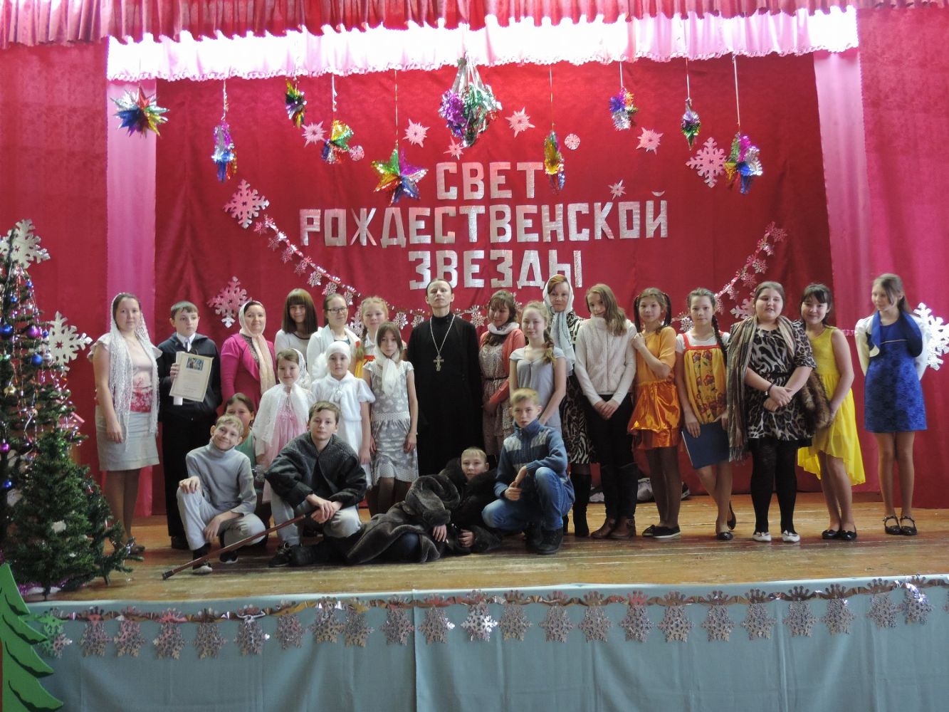 Мероприятие завершилось поздравительным словом настоятеля храма иконы Божией Матери «Владимирская» иерея Василия Яшмолкина. В свой речи он отметил: «Очень радостно и приятно смотреть на празднование Рождества Христова через детей. В то время, когда все взрослые вокруг обсуждают какой-то непонятный для детей кризис, от которого трепещут все, который давит на всех; дети просто радуются празднику Рождества Христова. Вот такой радости порой не хватает нам, взрослым. Мы чересчур обременили себя заботами, и наше сердце не может полностью открыться для принятия Бога, для празднования Рождества Христова и других православных праздников. Хочется пожелать нам, взрослым, учиться жить у наших деток, жить по-простому, искренне радоваться праздникам Божиим и не забывать, что Господь с нами всегда. Рождество Христово и Святая Пасха - праздники, по преимуществу детские, и в них как будто исполняется сила слов Христовых: «Если не будете как дети, не войдёте в царство Небесное» (Мф.18.3) Затем из рук отца Василия все творческие коллективы получили дипломы участников фестиваля «»