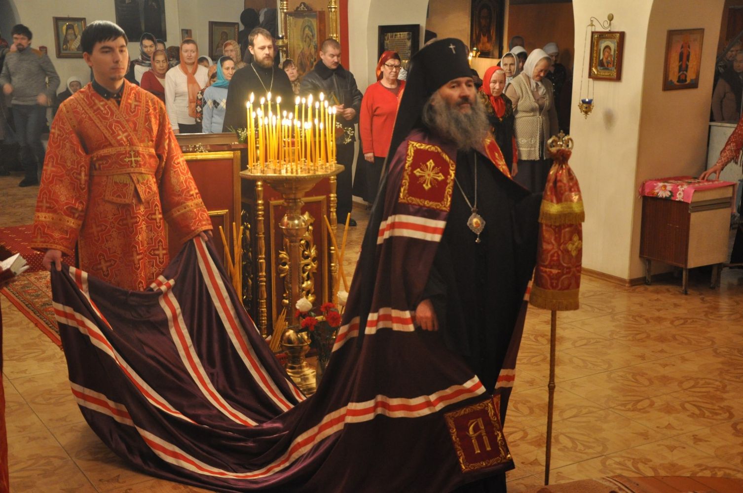Владыке сослужили: секретарь Епархиального управления иеромонах Серафим (Пасанаев), настоятель храма протоиерей Алексий Михайлов и клирик храма иерей Алексий Добиков. Богослужебные песнопения исполнил хор храма под управлением регента Надежды Торощиной.