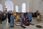 Владыке сослужили: настоятель храма протоиерей Алексий Михайлов и клирик храма иерей Алексий Добиков. По окончании Литургии был совершен крестный ход вокруг храма.