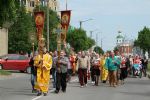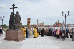 После Литургии Владыка, священнослужители и молящиеся совершили крестный ход к Благовещенскому собору, расположенному на площади Пресвятой Девы Марии. Маршрут крестного хода проходил мимо Воскресенского собора, Троицкого храма, а так же скульптурной композиции святых равноапостольных Кирилла и Мефодия. Памятник создателям славянской азбуки был установлен на набережной реки Малая Кокшага в 2014 году.