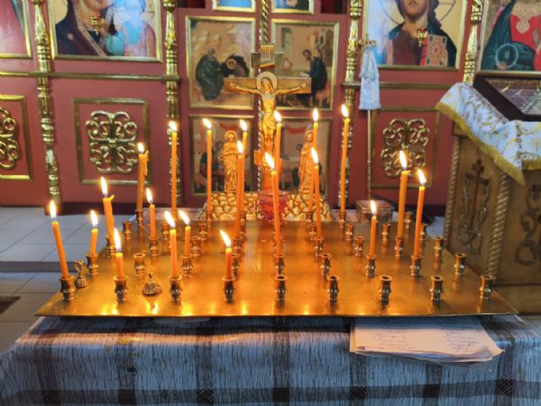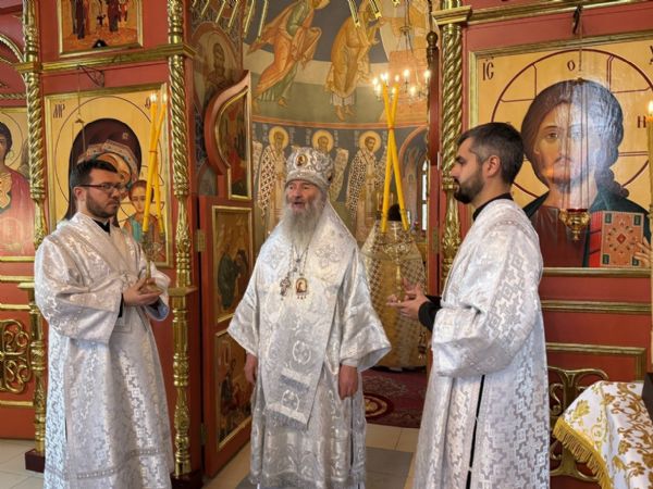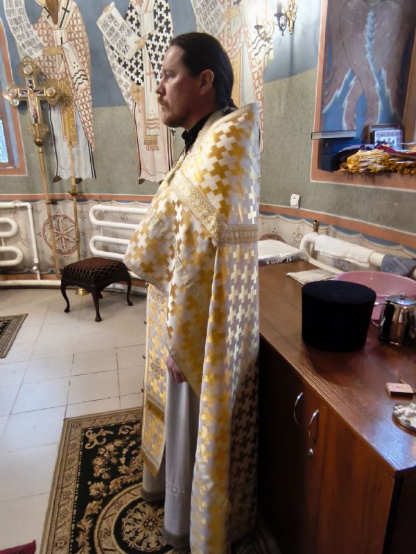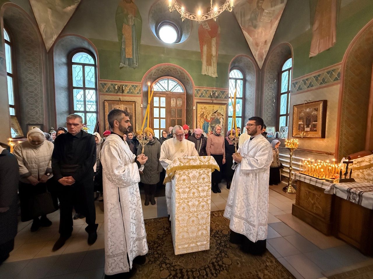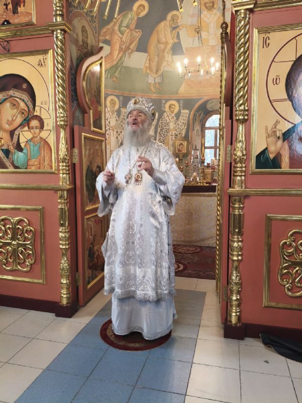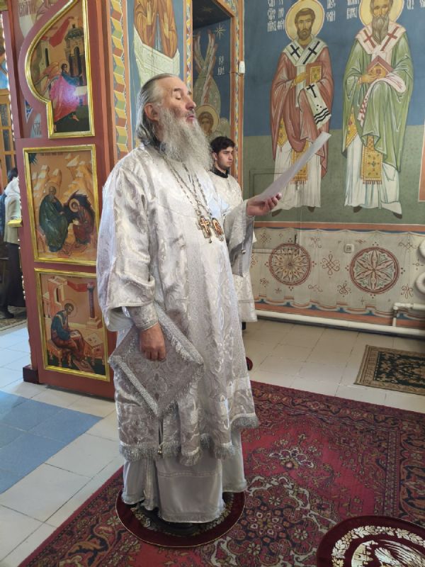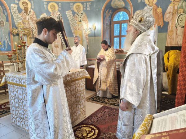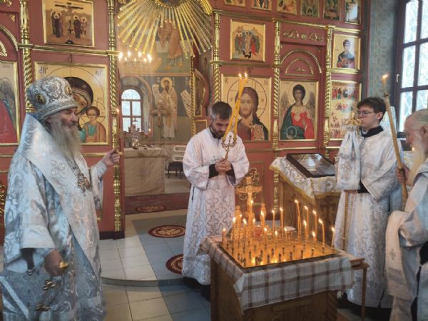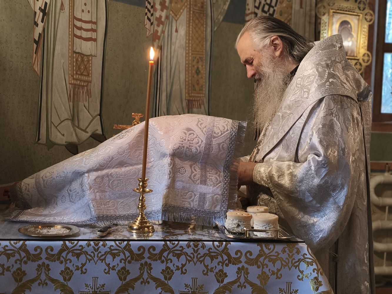 Владыке сослужили клирики храма Рождества Пресвятой Богородицы с. Семеновка иерей Димитрий Иванов и протодиакон Михаил Козловский. Песнопения исполнял хор семеновского храма.