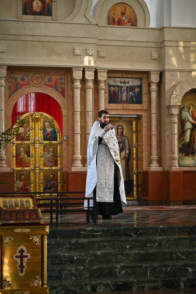 Совершили богослужение клирик кафедрального собора иерей Иоанн Милютин – ответственный по окормлению воинов СВО и их семей Йошкар-Олинской епархии, а также настоятель Воскресенского собора иерей Андрей Кочаков.