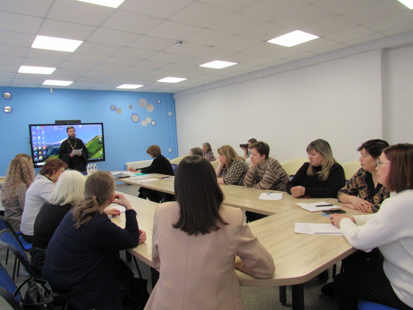 На семинар была приглашена руководитель регионального Союза православных женщин Торговкина Ольга Павловна, которая рассказала о деятельности общества и пригласила к сотрудничеству в деле духовного просвещения подрастающего поколения.