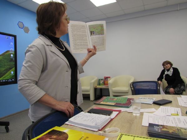 Сотрудники национальной библиотеки им. С.Г. Чавайна Колчина Светлана Петровна и Сокольникова Ольга Александровна, заведующая отделом литературы по искусству Национальной библиотеки, провели обзор мероприятий по проведению Декады Православной книги и познакомили участников семинара с содержательным материалом интегрированного курса занятий для детей «Сохраняя традиции предков»