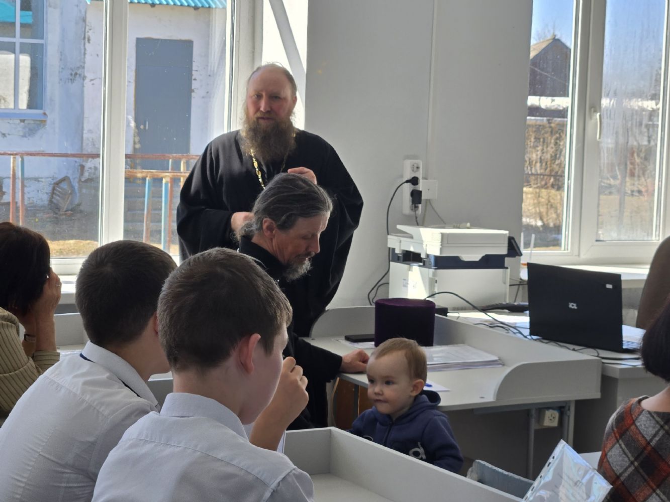 С напутственными словами к ребятам обратились директор Усолинской СОШ Римма Алексеевна Краснова, настоятель Свято?Духовского храма с. Усола иерей Александр Малинов и настоятель храма Владимирской иконы Божией Матери с. Владимрское иерей Алексий Васюткин.
