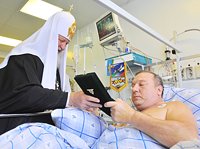 его святейшество сопровождал начальник главного военного госпиталя полковник медицинской службы и. максимов.