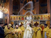 После сугубой ектении Святейший Патриарх Кирилл совершил молитву о мире на Украине.
