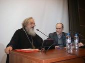 Первое заседание провел протоиерей Николай Озолин (Свято-Сергиевский православный богословский институт, Париж), который сообщил, что в следующем году будет отмечаться 90-летие Свято-Сергиевского института, и одной из тем конференции станет его история, богословская традиция, деятельность связанных с ним ученых и богословов русской эмиграции.