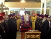 В слове, обращенном к духовенству и прихожанам, архиепископ Феофилакт передал благословение и поздравления Святейшего Патриарха Московского и всея Руси Кирилла.