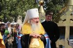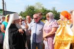 После окончания чина освящения, митрополит Феофан обратился ко всем пришедшим: «Берегите веру своих отцов! Теряется вера. Видите, что происходит? Откуда взялись разрушенные фермы, храмы, откуда это? От нашей бездуховности! Рванули все в непонятный рынок, в непонятный круговорот свободы и сломали себе головы. До какого позора мы дошли? Мы говорим все: «Санкции! Санкции! Продовольственная безопасность!» Когда в России была эта «безопасность»? Сохой пахали, весь мир кормили. А мы сейчас бежим за картошкой зарубеж, за яблоками в Польшу, и говорим: «Они нам помогут». Беда, что мы своё всё теряем, но есть надежда, что через трудности, мы поймём, что западные пряники слишком дорого нам обходятся: разрухой, наркоманией, безнравственностью, преждевременными смертями , не рождёнными , убитыми в утробе детьми и многими другими проблемами. Поэтому, любите храм, возрождайте веру, воспитывайте в вере деток, и по милости Царицы Небесной и Спасителя, мы придём и поймём, что «Кто против нас, если Бог за нас!?» Никакие санкции нам не будут страшны, самая страшная санкция – это когда нас отлучают от веры, от Бога. Вот это страшно! И всё это наш народ перетерпит, и выстроит. Я хочу сказать, что слава Богу, я сейчас часто встречаюсь с губернатором, есть понимание нравственного возрождения. Он делает всё, чтобы возродить храмы, дорогу к храму. Мы видим, как и президент старается и не стесняется своей веры. Говорит, что он православный, и по-настоящему свидетельствует от этом. И нам хватит по углам прятаться! Иногда просит душа пойти в храм, а мы оглядываемся друг на друга , не посмеялись бы над нами. Смеются, но только бесы, когда говорят, что «вот мы их и ловим на удочку!» Посмотрите на соседей, которые исповедают ислам. Никто не стесняется, а мы всё ещё стесняемся друг друга. Дай Бог, чтоб храм в вашем селе стал верным духовным ориентиром на пути и к приостановке излишней смертности, и к тому, что называется демографическим позитивом, а попросту рожать детей надо и всё! А не блудить налево и направо, убивая во чреве. Рожать надо, исполнять заповедь, которую Бог дал нам «Плодитесь и множитесь»!