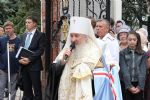 Задолго до обозначенного времени открытия на место стали собираться верующие. В ожидании губернатора владыка Феофан взял в руки микрофон и обратился к людям с рассказом о тех местах, где происходило само Преображение Господне: о горах Фавор, Ермон, истоках реки Иордан. Глубоко и проникновенно звучали слова архипастыря о том, что воспоминание Преображения Господня имеет отношение и к нашей жизни, к тому, что и нам всем всегда есть, что улучшить, преобразить в себе.