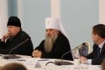 Актуальные вопросы церковно-государственных отношений обозначил управляющий делами Московской Патриархии митрополит Варсонофий. Среди них - опыт реализации в Приволжье Федерального закона «О передаче религиозным организациям имущества религиозного назначения, находящегося в государственной или муниципальной собственности», практика выделения земель под строительство церковных строений Русской Православной Церкви в регионах ПФО. Кроме того, рассматривались вопросы преподавания в общеобразовательных школах основ религиозных культур и светской этики, а также курса «Основы православной культуры».